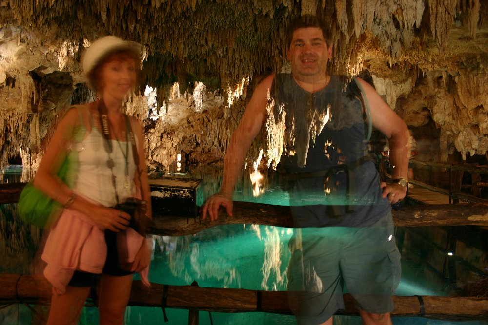 The newlyweds on a tour of Aktun Chen